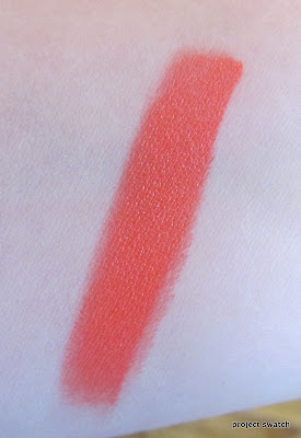 I absolutely LOVE the color of this lipstick – it is very bright, almost looking neon on me. The finish, however, isn’t great – it looks fine in the below photo, but it is a little bit chalky/uneven looking in real life – it’s something I can live with for the awesome color, but it doesn’t hold a candle to any of, say, NARS’s matte formulas.